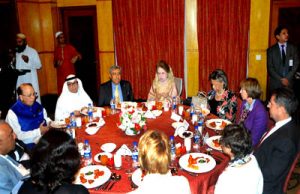 ইফতার মাহফিলে পৌঁছে খালেদা জিয়া কূটনীতিকদের সঙ্গে কুশল বিনিময় করেন। ইফতার মাহফিলে যুক্তরাষ্ট্রের রাষ্ট্রদূত মার্শা ব্লুম বার্নিকাট, যুক্তরাজ্যের হাইকমিশনার এলিসন ব্লেইক, ভারতের ডেপুটি হাইকমিশনার আদর্শ সোয়াইকা, সৌদি রাষ্ট্রদূত আব্দুল্লাহ আল মুতাহিরি, মিশরের রাষ্ট্রদূত মাহমুদ ইজ্জাত, পাকিস্তানের সুজা আলম, ফ্রান্সের রাষ্ট্রদূত সোফি অ্যাবট, ইউরোপীয় ইউনিয়নের রাষ্ট্রদূত পিয়েরে মায়াদুন, নরওয়ের রাষ্ট্রদূত মেরেতো লুনডেমো, ইতালির মারিও পালমা, কুয়েতের রাষ্ট্রদূত আবদেল মোহাম্মদ এ এইচ হায়াত, সংযুক্ত আরব আমিরাতের সাইদ বিন হাজার আল শাহিসহ ইরানের কূটনীতিকরা অংশ নেন।