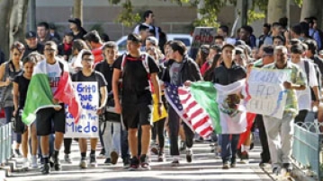 ডেস্ক রিপোর্ট: যুক্তরাষ্ট্রের ক্যালিফোর্নিয়া ও মেরিল্যান্ডসহ বিভিন্ন অঙ্গরাজ্যে শত শত শিক্ষার্থী সোমবার নবনির্বাচিত প্রেসিডেন্ট ডোনাল্ড ট্রাম্পবিরোধী বিক্ষোভে অংশ নিতে ক্লাস বর্জন করে।লস এঞ্জেলেসে শিক্ষার্থীরা বয়লি হাইটসে অবস্থিত একটি প্লাজা পর্যন্ত শান্তিপূর্ণ বিক্ষোভ মিছিল করে। এলাকাটিতে হিস্পানিকরা সংখ্যাগরিষ্ঠ। মিছিলের সময় তাদের হাতে বিভিন্ন প্লাকার্ড ছিল। এতে লেখা ছিল-‘জেগে ওঠো’ এবং ‘ঐক্যবদ্ধ হও’। তাদের হাতে আমেরিকা ও মেক্সিকোর পতাকাও ছিল। মেরিল্যান্ডের সিলভার স্প্রিং ও অরেগনের পোর্টল্যান্ডেও একই ধরণের বিক্ষোভ মিছিল হয়েছে। ট্রাম্প প্রেসিডেন্ট নির্বাচিত হওয়ার পর গত এক সপ্তাহ ধরে দেশটিতে বিক্ষোভ হচ্ছে।লস এঞ্জেলেসে বিভিন্ন স্কুলের কর্মকর্তারা ক্লাস বর্জন করে বিক্ষোভে অংশ না নিতে এবং ক্ষোভ প্রকাশের আলাদা উপায় খুঁজে বের করার পরামর্শ দেয়া সত্ত্বেও সেখানে বিক্ষোভ হয়েছে। লস এঞ্জেলেস ইউনিফাইড স্কুল ডিস্ট্রিক্ট সুপার মিশেল কিং বলেন, যুক্তরাষ্ট্রে প্রেসিডেন্ট নির্বাচন হয়েছে প্রায় এক সপ্তাহ হতে চললো। তবে অনেক শিক্ষার্থী নির্বাচনের ফল নিয়ে এখনও উদ্বিগ্ন এবং তারা চায়, তাদের কথা শোনা হোক। তিনি বলেন, এখন গুরুত্বপূর্ণ সংলাপ প্রয়োজন। আমরা চাই, আমাদের শিক্ষার্থীরা জানুক, তারা একা নয়। যাই হোক, শিক্ষা কার্যক্রম ব্যাহত করে এমন কর্মকান্ড শিক্ষার্থীদের করা উচিত হবে না।