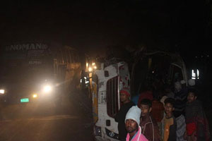 মানিকগঞ্জ থানার এসআই ফরিদ আহমেদ জানায়, ইসলাম পরিবহনের একটি বাস টঙ্গীতে জোড় ইজতেমা শেষে পটুয়াখালীর কুয়াকাটা যাচ্ছিল। পথিমধ্যে মুলজান আসার পর একটি ট্রাককে ওভারটেক করতে গিয়ে ট্রাকটির পিছনে সজোরে ধাক্কা দেয়। এতে বাসটি পাশ্ববর্তী খাদে পড়ে যায়। ঘটনাস্থল থেকে বাস ও ট্রাক জব্দ করা হয়েছে।
