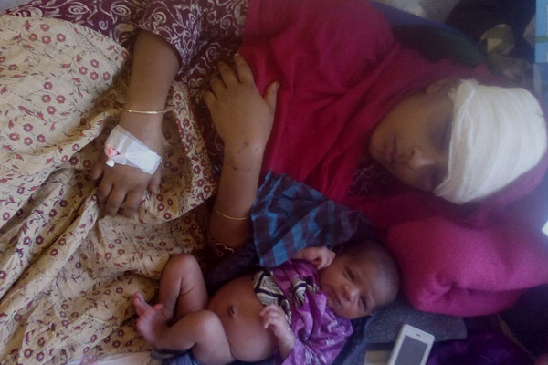 শনিবার টাঙ্গাইল মেডিক্যাল কলেজ হাসপাতালের সাত নম্বর ওয়ার্ডের তের নম্বর বেডে গিয়ে দেখা যায়, মৃত্যু যন্ত্রণায় ছটফট করছে বাকরুদ্ধ ফাতেমা। আর তার পাশে শুয়ে হাত-পা নাড়াচ্ছে ৭ দিনের কন্যা সন্তান অহনা। যে সময় মায়ের ভালোবাসা পাওয়ার কথা ছিল, ঠিক সে সময় বাবা নামক হিংস্র নরপিচাশের থাবায় মায়ের ভালোবাসা থেকে বঞ্চিত হচ্ছে শিশুটি। মাথা ও ঘাড়ে বেশ কয়েকটি সেলাই দেয়া হয়েছে ফাতেমার। পাশে আহাজারি করছেন ফাতেমার মা হালিমা ও বাবা তোফাজ্জল হোসেন।