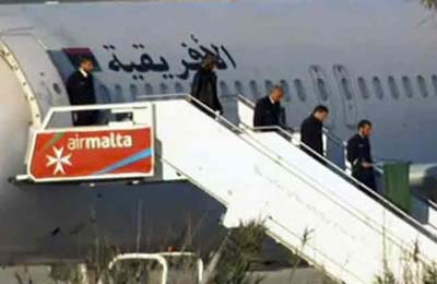 সেবা থেকে ত্রিপোলি না নিয়ে ভূমধ্যসাগরের ছোট দ্বীপদেশ মাল্টায় বিমানটি অবতরণ করলে সেখানে অচলাবস্থার সৃষ্টি হয়। দেশটির আইনশৃঙ্খলা বাহিনী তাদের সঙ্গে যোগাযোগ করে। ছিনতাইকারীদের পরিচয় এখনো জানা যায়নি।