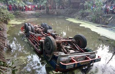 ডেস্ক রিপোর্ট: সাতক্ষীরার তালা উপজেলার জেঠুয়া এলাকায় নদী খননে ব্যবহৃত মেশিন বহনকারী একটি ট্রাক উল্টে পুকুরে পড়েছে। এতে দুজন নিহত হয়েছেন। বুধবার ভোররাত ৪টার দিকে সাতক্ষীরা শহর থেকে ৩০ কিলোমিটার দূরে এই দুর্ঘটনা ঘটে। নিহত দুজন হলেন ট্রাকচালক রওশন আলী (৩৫) ও শ্রমিক আবদুল আজিজ (৩০)। তাঁদের মধ্যে রওশনের বাড়ি পাবনা জেলার আমিনপুরের মহেশখোলায়। আজিজের বাড়ি চট্টগ্রামের পটিয়ায়। নিহত দুজনের লাশ তালা থানায় নেওয়া হয়েছে। ট্রাকে থাকা অপর তিন শ্রমিক শাহীন, ফাহাদ ও জসিম অক্ষত রয়েছেন। তালা থানার ভারপ্রাপ্ত কর্মকর্তা (ওসি) হাসান হাফিজুর রহমান জানান, ট্রাকটি একটি এসক্যাভেটর (নদী খনন মেশিন) নিয়ে তালা থেকে জেঠুয়ার কপোতাক্ষ তীরে যাচ্ছিল। পথে নিয়ন্ত্রণ হারিয়ে ট্রাকটি উল্টে পার্শ্ববর্তী পুকুরে পড়ে যায়। খবর পেয়ে পুলিশ ও সাতক্ষীরা থেকে যাওয়া ফায়ার সার্ভিসের লোকজন ট্রাকটি তুলে দুটি লাশ উদ্ধার করে।