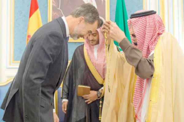 এর আগে তিন দিনের সফরে শনিবার সৌদি আরব পৌঁছান ষষ্ঠ ফিলিপ। রবিবার রিয়াদে অবস্থিত আল-ইয়ামামা প্রাসাদে স্পেনের রাজাকে অভ্যর্থনা জানানোর সময় তার গলায় পদক পরিয়ে দেন সৌদি বাদশাহ।
