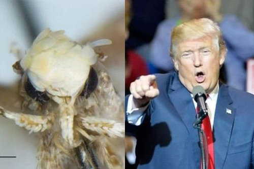 নামকরণের কারণ পতঙ্গটির মাথায় সোনালী রংয়ের আঁশ যেটি দেখতে অনেকটা ডোনাল্ড ট্রাম্পের বহুল আলোচিত চুলের মত।