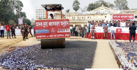 পরে টাউন হল মাঠে ফেনসিডিল, গাঁজা, হুইস্কি, বিয়ার, মদ, ইয়াবা, যৌন উত্তেজক ট্যাবলেট ও নেশাজাতীয় সিরাপসহ ৩৮ কোটি ৪৮ লাখ ৩ হাজার ৪০ টাকার মাদকদ্রব্য ধ্বংস করা হয়।