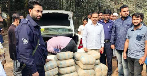 আশুলিয়া থানার উপ-পরিদর্শক (এসআই) শহিদুল ইসলাম জানান, মঙ্গলবার ভোর হওয়ার পর থেকে টয়োটা এক্সজিও মডেলের (ঢাকা মেট্রো-গ-২০-০৪৬৭) ওই প্রাইভেটকারটি জঙ্গলে দেখতে পায় স্থানীয়রা। পরে তাদের সন্দেহ হলে তারা স্থানীয় ইউপি চেয়ারম্যান শাহাবুদ্দিন মাদবরকে খবর দেয়। তিনি ঘটনাস্থলে গিয়ে প্রাইভেটকারটির মালিক কিংবা চালক কাউকে না পেয়ে পুলিশকে খবর দেন। সংবাদ পেয়ে পুলিশ ঘটনাস্থলে গিয়ে প্রাইভেটকারটির তালা ভেঙে তল্লাশি চালায়। এক পর্যায়ে প্রাইভেটকারটির ব্যাকডালায় কয়েকটি বস্তায় ১০৮ কেজি গাঁজা পাওয়া যায়।