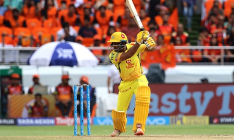 নিজেদের মাঠে টস জিতে প্রথমে ফিল্ডিং বেছে নেয় হায়াদারাবাদ। দুই ওপেনার অস্ট্রেলিয়ান শেন ওয়াটসন ৯ ও দক্ষিণ আফ্রিকার ফাফ ডু-প্লেসিস ১১ রান করে ফিরলে দলের হাল ধরেন সুরেশ রায়না ও রাইডু। উইকেটে সেট হতে সময় নিলেও পরবর্তীতে দ্রুতগতিতে রান তুলেছেন তারা।