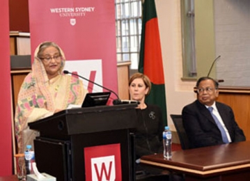প্রধানমন্ত্রী ওয়েস্টার্ন সিডনী ইউনিভার্সিটি (ডব্লিউএসইউ) পরিদর্শনকালে পরমাত্তা সাউথ ক্যাম্পাসে শিক্ষার্থীদের উদ্দেশ্যে প্রদত্ত ভাষণে একথা বলেন।
