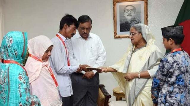 ০২ আগষ্ট, ২০১৮ (বিবিনিউজ্):রাজধানীর বাসের চাপায় নিহত দুই শিক্ষার্থী দিয়া খানম মীম ও আবদুল করিমের পরিবারকে ২০ লাখ টাকা করে অনুদান দিয়েছেন প্রধানমন্ত্রী শেখ হাসিনা। আজ বৃহস্পতিবার নিজ কার্যালয়ে ডেকে নিয়ে তাদের হাতে সমমূল্যের সঞ্চয়পত্র দেন প্রধানমন্ত্রী।