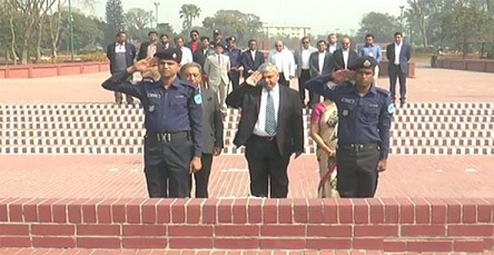 সাভার জাতীয় স্মৃতিসৌধে বীর শহীদদের প্রতি ফুল দিয়ে শ্রদ্ধা জানিয়েছেন বাংলাদেশ সফরত আইসিসির প্রেসিডেন্ট শশাঙ্ক মনোহার। বৃহস্পতিবার সকালে তিনি ঢাকা থেকে হেলিকপ্টার যোগে সন্ত্রীক স্মৃতিসৌধে আসেন। পরে তিনি বীর শহীদদের প্রতি ফুল দিয়ে শ্রদ্ধা জানান। এসময় তিনি শহীদদের স্বরণে এক মিনিট নিরবে দাড়িয়ে থাকেন। শ্রদ্ধা নিবেদন শেষে তিনি স্মৃতিসৌধের পরিদর্শন বইতে স্বাক্ষর করেন। এসময় স্মৃতিসৌধে তার সাথে উপস্থিত ছিলেন বাংলাদেশ ক্রীকেট বোর্ড বিসিবির সভাপতি নাজমুল হাসান পাপন এমপি,বিসিবির পরিচালক জালাল ইউসুফসহ আরো অনেকে।