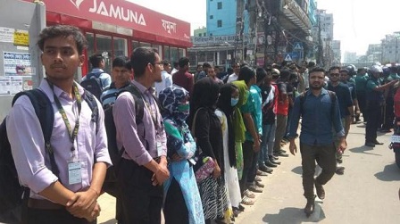 টেলিফোনে বাড্ডা থানায় যোগাযোগ করা হলে সেখানকার দায়িত্বরত কর্মকর্তা (ডিউটি অফিসার) প্রথম আলোকে বলেন, ৫০ থেকে ৬০ জনের মতো শিক্ষার্থী যমুনা ফিউচার পার্কের সামনে ফুটপাতে মানববন্ধন করছেন। সেখানকার সড়কে যান চলাচল স্বাভাবিক।