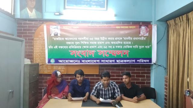 আজ মঙ্গলবার দুপুরে ঢাকা বিশ্ববিদ্যালয় সাংবাদিক সমিতির কার্যালয়ে আয়োজিত এক সংবাদ সম্মেলনে ৩৫-প্রত্যাশীদের অন্যতম সংগঠন বাংলাদেশ সাধারণ ছাত্র কল্যাণ পরিষদ এই হুঁশিয়ারি দেয়। চাকরিতে আবেদনের বয়সসীমা ৩৫ বছর করার দাবির বিষয়ে গতকাল সোমবার প্রধানমন্ত্রী শেখ হাসিনার দেওয়া বক্তব্যের প্রতিক্রিয়া জানাতে এই সংবাদ সম্মেলনের আয়োজন করা হয়।