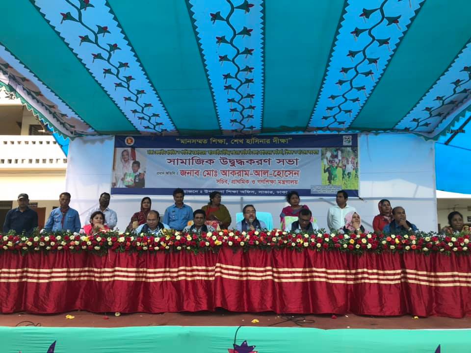 সাভার প্রতিনিধি:আগামীতে প্রাথমিক বিদ্যালয় তৃতীয় শ্রেণী পর্যন্ত পরীক্ষা থাকছে না । তবে নিয়মিত ক্লাস-পরীক্ষা অনুষ্ঠিত হচ্ছে । বৃহস্পতিবার ঢাকার সাভারের আশুলিয়া সরকারি প্রাথমিক বিদ্যালয় প্রাঙ্গণে ঢাকা জেলা কর্মকর্তা ,শিক্ষক ও সমন্বয় সামাজিক উদ্বুদ্ধকরণ সভায় প্রধান অতিথির বক্তব্যে প্রাথমিক গণশিক্ষা মন্ত্রণালয়ের সচিব মোঃ আকরাম-আল-হোসেন এ কথা বলেন মানসম্মত শিক্ষা শেখ হাসিনার দীক্ষা স্লোগানকে সামনে রেখে সচিব আরও বলেন আমাদের শিক্ষকরা পৃথিবীর শ্রেষ্ঠ সন্তান এর যেখানে গত বছর ৬৫ ভাগ শিক্ষার্থী বাংলা রিডিং পড়তে পারতো না সেখানে এবছর আগামীতে শতভাগ করার আওতায় আনতে হবে সভায় সভায় সভাপতিত্ব করেন ঢাকা জেলা প্রাথমিক শিক্ষা অফিসার ফেরদৌস শিখা এতে আরো বক্তব্য রাখেন বিশেষ অতিথি প্রাথমিক শিক্ষা অধিদপ্তরের মহাপরিচালক ডঃ মনজুর কাদের কাদের ঢাকা বিভাগের উপ-পরিচালক মোঃ ইফতেখার হোসেন ভূঁইয়া সাভার উপজেলা প্রাথমিক শিক্ষা অফিসার রাকিবা সুলতানা প্রমুখ সভা শেষে শিক্ষার্থী-শিক্ষকদের শিল্পী গোষ্ঠীর সংগীত পরিবেশিত হয় ।
