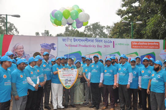 ২ অক্টোবর, ২০১৯ (বিবিনিউজ) : জাতীয় উৎপাদনশীলতা দিবস উপলক্ষে শিল্প মন্ত্রণালয়ের আওতাধীন ন্যাশানাল প্রোডাক্টিভিটি অর্গানাইজেশন (এনপিও) আজ সকালে এক বর্ণাঢ্য শোভাযাত্রার আয়োজন করে।