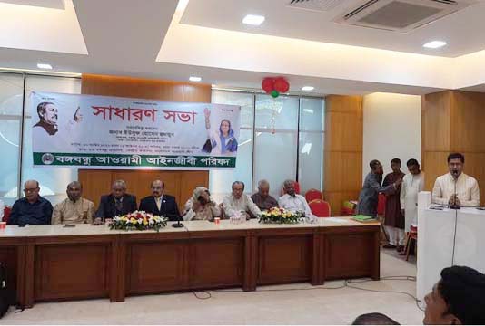 বঙ্গবন্ধু আওয়ামী আইনজীবী পরিষদের প্রথম সাধারণ সভায় আজ এ আহ্বান জানান বক্তারা। আজ শনিবার (৫ অক্টোবর) রাজধানীর বঙ্গবন্ধু এভিনিউতে আওয়ামীলীগের কেন্দ্রীয় কার্যালয়ের অডিটোরিয়ামে বঙ্গবন্ধু আওয়ামী আইনজীবী পরিষদের সাধারণ সভা অনুষ্টিত হয়। সভায় সভাপতিত্ব করেন সংগঠনের আহবায়ক ও বাংলাদেশ বার কাউন্সিলের সহ-সভাপতি ইউসুফ হোসেন হুমায়ূন। সভা সঞ্চালনা করেন সংগঠনের সদস্য সচিব ব্যারিস্টার শেখ ফজলে নূর তাপস এমপি।