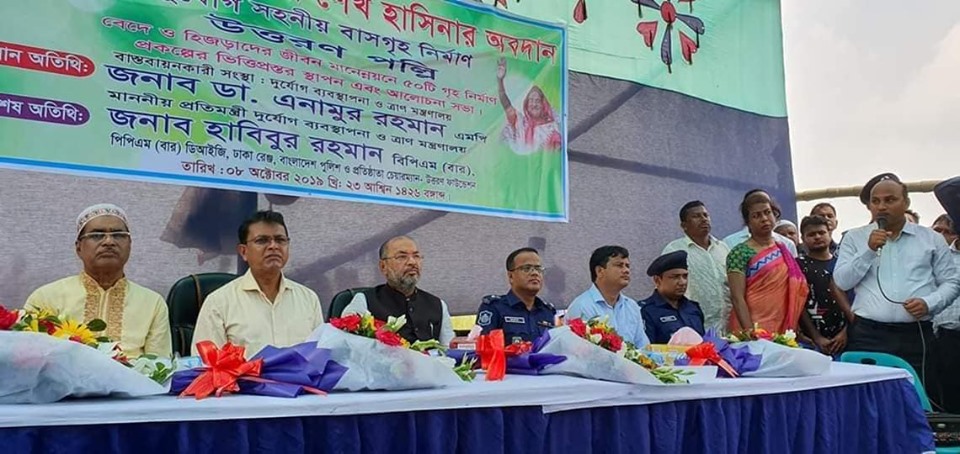 দুর্যোগ ব্যবস্থাপনা ও ত্রাণ প্রতিমন্ত্রী ডা.এনামুর রহমান এসময় আরও বলেন বর্তমান সরকারের নির্বাচনী ইশতেহার অনুযায়ী দেশের কোন মানুষ গৃহহীন থাকবে না গ্রাম হবে শহর জানিয়ে তিনি আরও বলেন নতুন করে আবারও ১১ হাজার ৬’শ চারটি ঘর নির্মাণ করা হচ্ছে দেশের কোন মানুষ নৌকায় থাকবে না যাদের ঘর নেই সবার ঘর নির্মাণ করে দেবে সরকার।