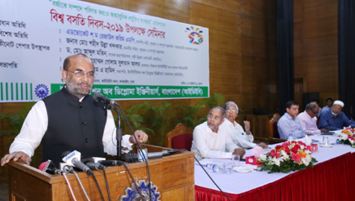 মন্ত্রী আজ ইনস্টিটিউশন অব ডিপ্লোমা ইঞ্জিনিয়ার্স, বাংলাদেশ (আইডিইবি) ভবনে বিশ্ব বসতি দিবস উপলক্ষে আয়োজিত সেমিনারে প্রধান অতিথির বক্তৃতা করছিলেন।