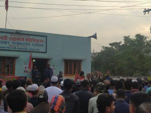 বেতন বৃদ্ধি ও শ্রমিক ছাঁটাই প্রতিবাদে সাভারে ট্যনারিতে শ্রমিকদের সমাবেশ