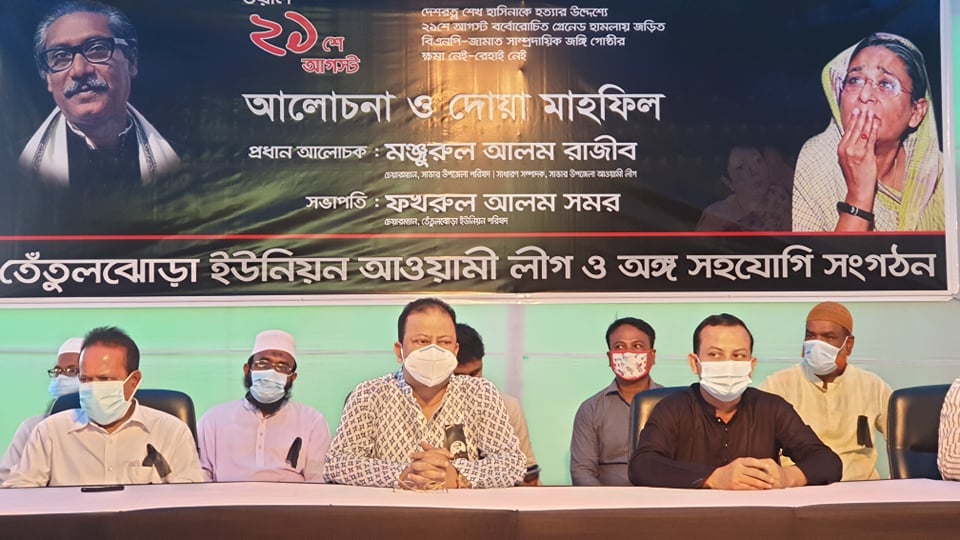 তেঁতুলঝোড়া ইউনিয়ন পরিষদের চেয়ারম্যান মোহাম্মদ ফখরুল আলম সমরের সভাপতিত্বে আলোচনা সভা ও দোয়া মাহফিলে এসময় অন্যান্যদের মধ্যে উপস্থিত ছিলেন,ঢাকা জজ কোর্টের পিপি সামছুর রহমান,সাভার উপজেলা আওয়ামী স্বেচ্ছাসেবক লীগের সাধারণ সম্পাদক লিয়াকত হোসেনসহ আরো অনেকে।