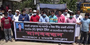 ষ্টাফ রিপোর্টার,৪ সেপ্টেম্বর,২০২০(বিবিনিউজ):ঢাকার ধামরাইয়ে প্রকাশ্যে দিবালোকে বিজয় টিভির ধামরাই উপজেলা প্রতিনিধি জুলহাস উদ্দিনকে ছুরিকাঘাতে হত্যার ঘটনায় আসামীদের দ্রুত গ্রেপ্তার করে ফাঁসির দাবিতে মানববন্ধন কর্মসুচী পালন করেছে সাংবাদিকরা।