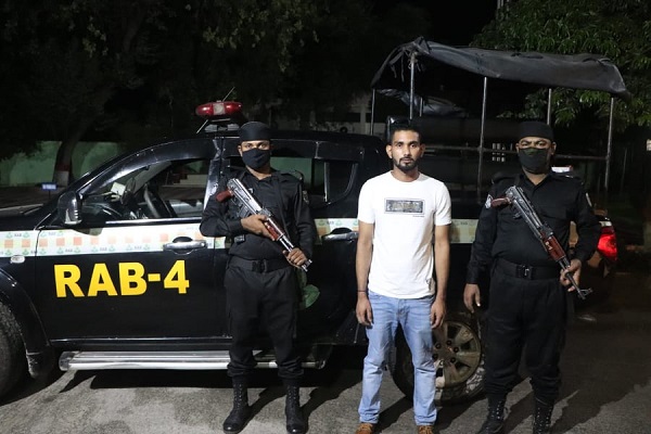 গভীর রাতে সাভার বাজার বাসষ্ট্যান্ড এর একটি হোটেলের সামনে টাকা নেওয়ার সময় তাকে হাতে নাতে আটক করে র্যাব ৪ ।