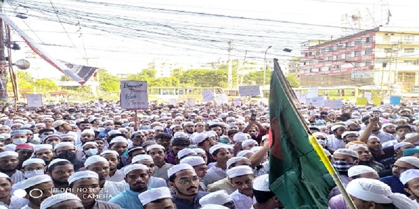 সমাবেশে ফ্রান্সের সাথে কুটনৈতিক সম্পর্ক ছিন্ন, অবমাননাকারীকে বিশ্ববাসীর কাছে ক্ষমা প্রার্থনাসহ বিভিন্ন দাবি করেন মুসল্লিরা।