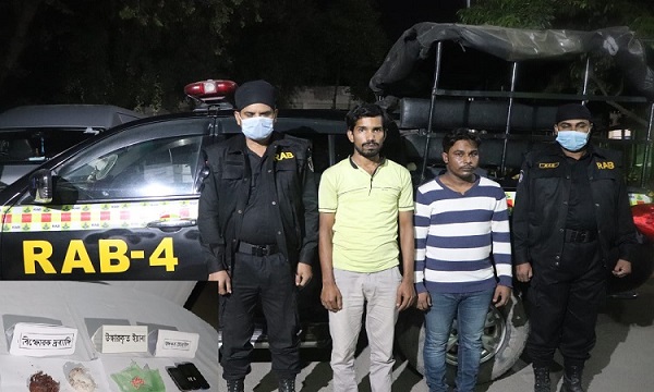 শুক্রবার (২৭ নভেম্বর) রাতে তাদেরকে আটক করা হয়। র্যাব-৪ জানায়, রাতে দারুসসালাম এলাকায় অভিযান অভিযান চালিয়ে বোমা তৈরির সরঞ্জামদিসহ দুই মাদক ব্যবসায়ীকে আটক করা হয়। এসময় তাদের কাজ থেকে ১০০ পিস ইয়াবা তিনটি চোরাই মোবাইল উদ্ধার করা হয়।