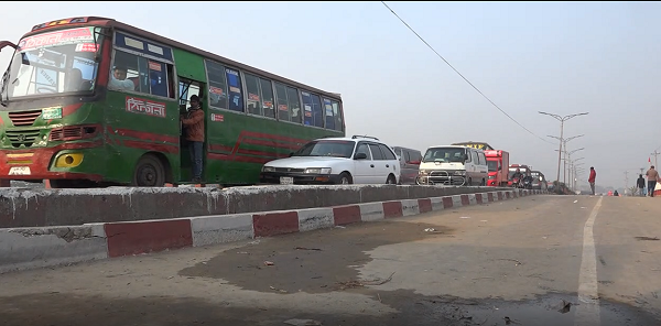 আমিনবাজারের সালেহপুর ব্রীজে টানা চতুর্থ দিনের মত এক পাশে যানচলাচল বন্ধ,তীব্র যানজট