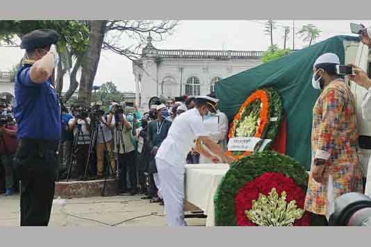 ১৫ এপ্রিল ২০২১(বিবিনিউজ ):স্পিকার ড. শিরীন শারমিন চৌধুরীর পক্ষে জাতীয় সংসদের সার্জেন্ট এট আর্মস সুপ্রিম কোর্ট আইনজীবী সমিতির নব-নির্বাচিত সভাপতি ও সাবেক আইনমন্ত্রী আবদুল মতিন খসরু এমপির কফিনে পুষ্পস্তবক অর্পণের মাধ্যমে শ্রদ্ধা নিবেদন করেছেন।