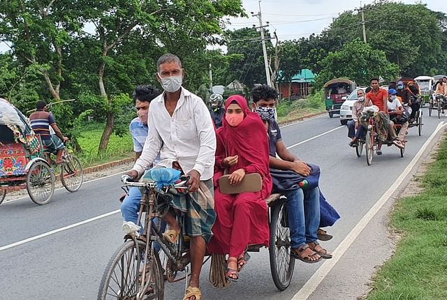 ৩১ জুলাই,২০২১(বিবিনিউজ ):গণপরিবহন বন্ধ থাকায় ভ্যান, রিকশা ও বিভিন্ন ছোট যানবাহনে করে ঢাকাসহ দেশের বিভিন্ন স্থানে ছুটে যাচ্ছেন কর্মজীবী মানুষ। পোশাক কারখানা খোলার খবর পেয়ে অতিরিক্ত ভাড়া দিয়ে কর্মক্ষেত্রে যেতে হচ্ছে তাঁদের। এতে পোহাতে হচ্ছে চরম ভোগান্তি। রাজবাড়ী শহরের নতুনবাজার বাসস্ট্যান্ড এলাকায় যাত্রীদের সঙ্গে কথা বলে জানা যায়, কাল রোববার থেকে পোশাক কারখানা খুলে দেওয়ার ঘোষণা দেওয়া হয়েছে। শ্রমিকদের মুঠোফোনে খুদে বার্তা পাঠানো হয়েছে। কাউকে কাউকে জানানো হয়েছে ফোন করে। সময়মতো কর্মস্থলে পৌঁছাতে না পারলে চাকরিতে সমস্যা হবে। চাকরি চলে যাওয়ারও আশঙ্কা রয়েছে। এমন পরিস্থিতিতে তাঁরা বাধ্য হয়ে কর্মস্থলে ছুটছেন।…