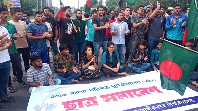 স্টাফ রিপোর্টার,৩ জুলাই ২০২৪(বিবিনিউজ): সরকারি চাকরিতে কোটাপদ্ধতি বাতিল এবং মেধাভিত্তিক নিয়োগের পরিপত্র বহাল রাখার দাবিতে জাহাঙ্গীরনগর বিশ্ববিদ্যালয়ের (জাবি) শিক্ষার্থীরা আজ এক সমাবেশ ও মিছিল করেছেন। জাবির মুরাদ চত্ত্বর থেকে শুরু হওয়া এই মিছিলটি ঢাকা-আরিচা মহাসড়কে অবস্থান নেয়। এতে ঢাকা-আরিচা মহাসড়কে সকল গাড়ি চলাচল বন্ধ হয়ে যায়, ফলে রাস্তার দুই পাশে দীর্ঘ যানজটের সৃষ্টি হয়।প্রায় আড়াই ঘণ্টা মহাসড়ক অবরোধের পর পুলিশের অনুরোধে আন্দোলনকারীরা অবরোধ তুলে নেয়। এ সময় আগামীকাল রায় পক্ষে বেয়ার তুলেন তারা।