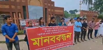 ঢাকা আরিচা মহাসড়কে মানববন্ধন কর্মসূচি পালন করেন জাবির শিক্ষার্থীরা