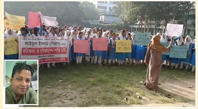 সাভার বালিকা বিদ্যালয়ের বিতর্কিত শিক্ষক সাইফুলকে অপসারণের দাবিতে শিক্ষার্থীদের বিক্ষোভ